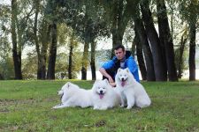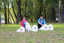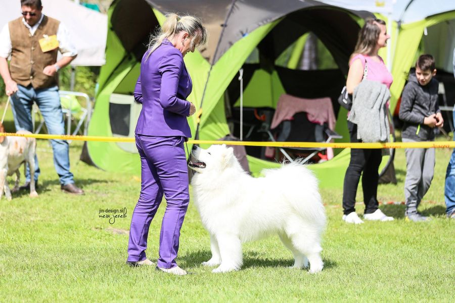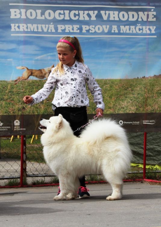 27.10.2019 – beautiful Sunday at the dogshow in Bratislava. Only few days before the show the orgamisators changed the judge for samoyeds....and we have never heard about him. Samoyeds were the last judged breed in our ring and it looked like this judge is very strict, but probably samoyed smile was the reason for his smile too.